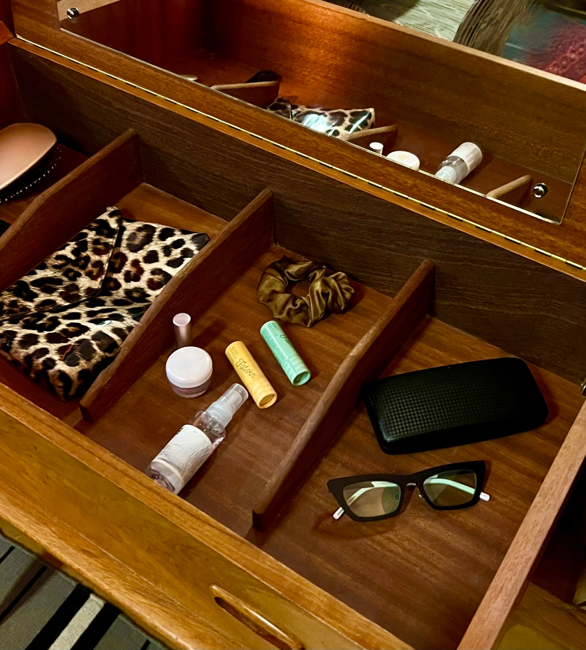 UNIQUE LIFT TOP w/ INTERIOR MIRROR TEAK MID CENTURY MODERN DANISH DESK/ VANITY/ ENTRANCE/ ART TABLE
