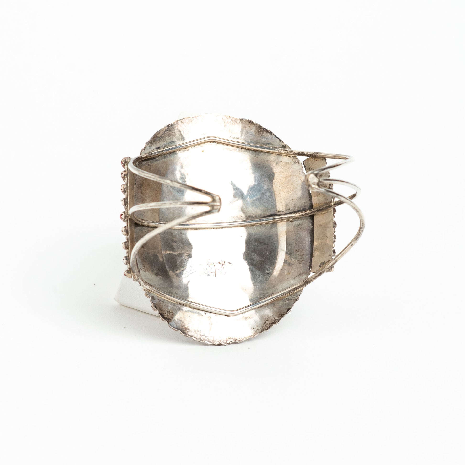 Collector’s Piece Vintage Violet & Jeffrey Begay Navajo Needlepoint Red Coral & Sterling Silver Cuff.