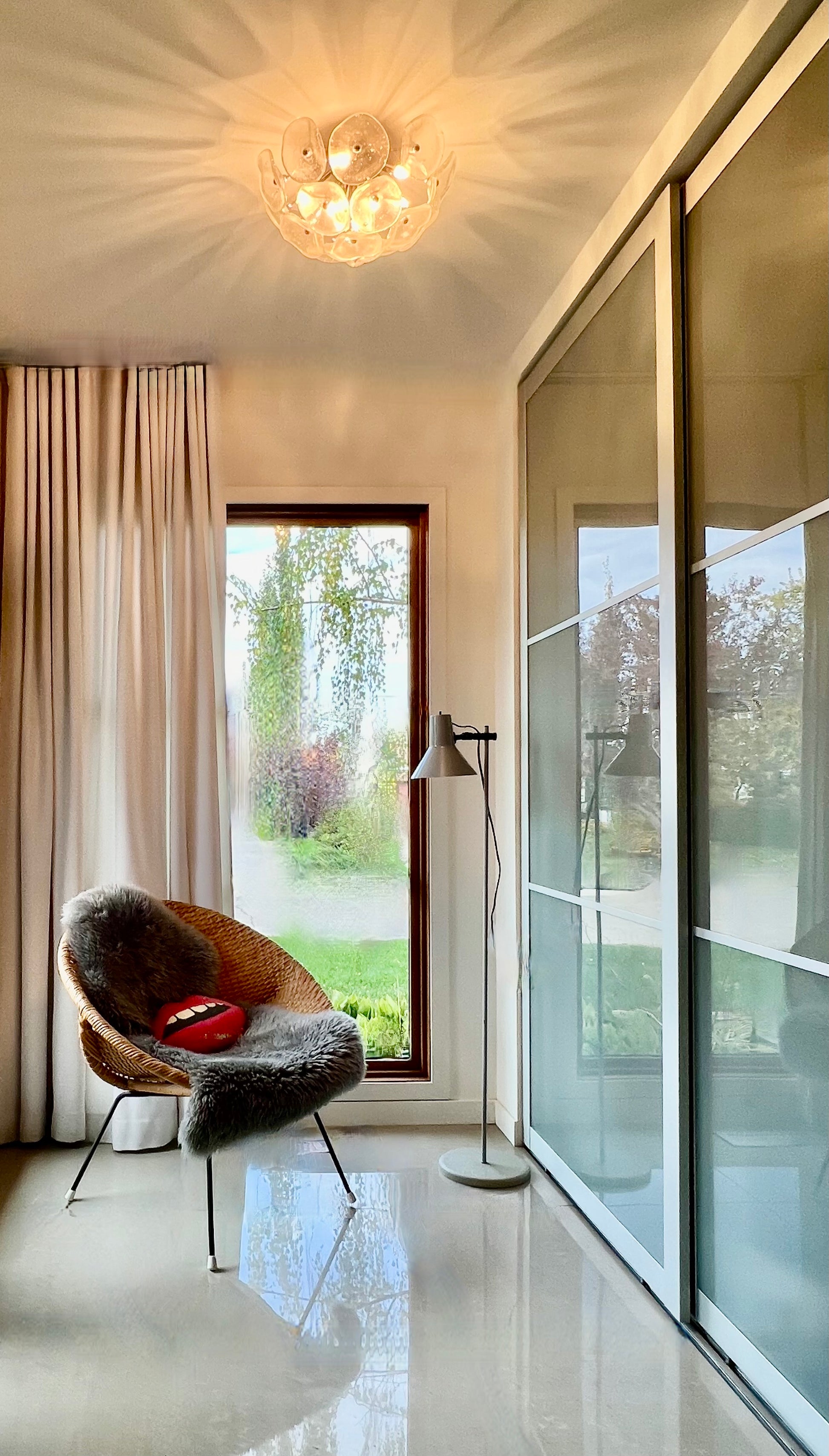 WOVEN WICKER MID CENTURY MODERN HOOP CHAIR ON BLACK STEEL BASE